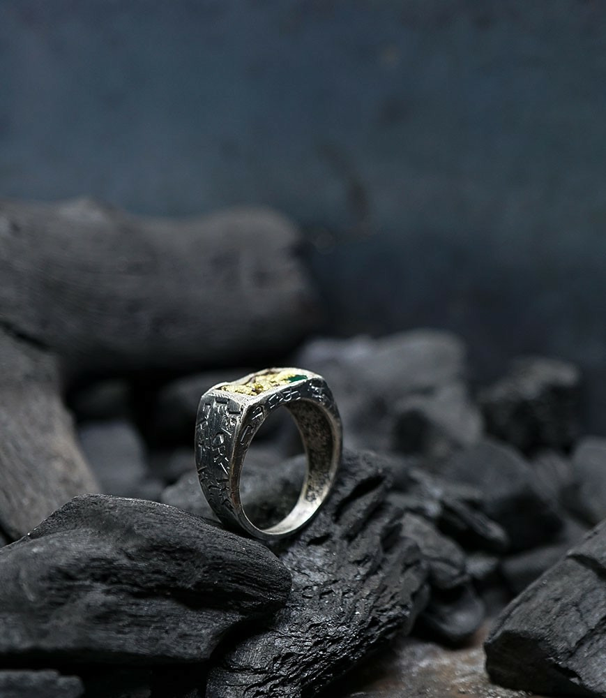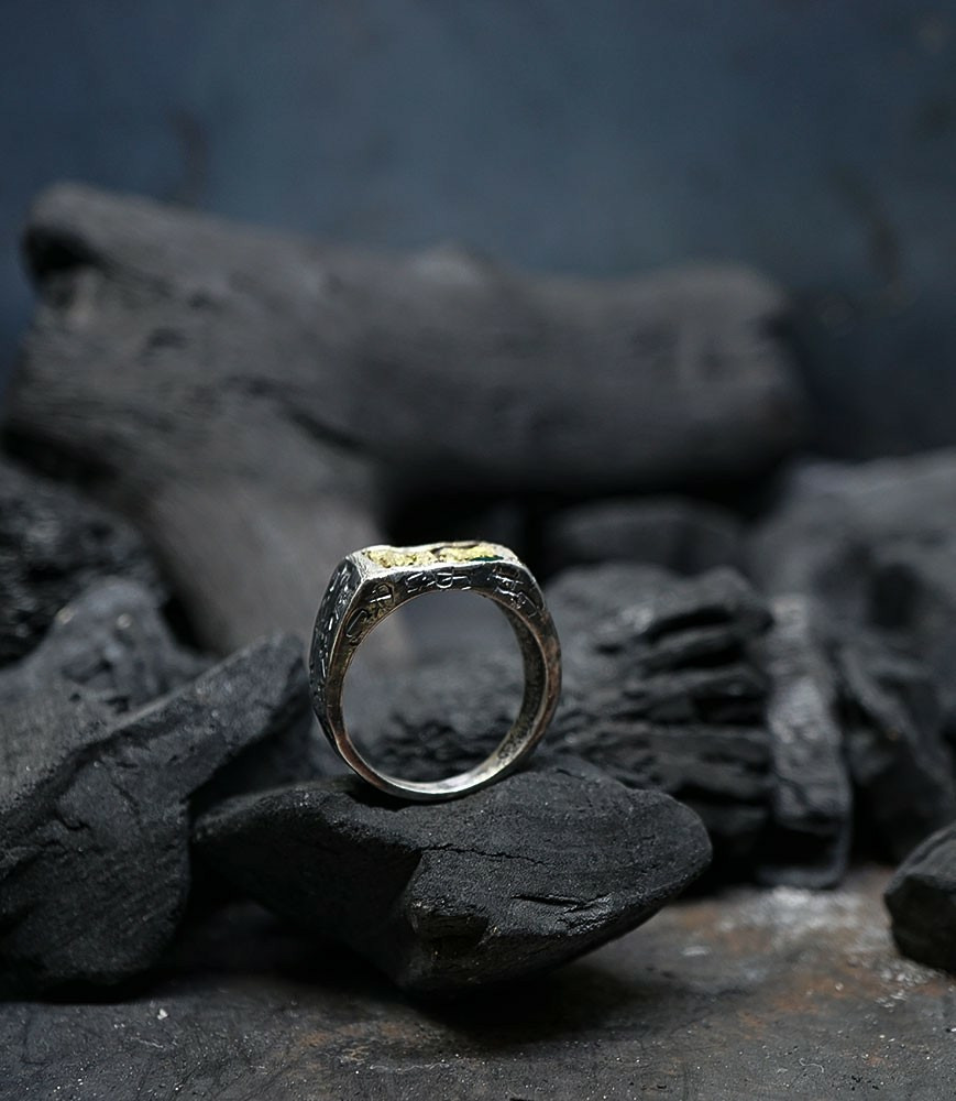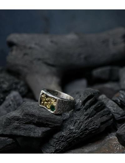 Héphaïstos Stones Collection - Bague Emeuraude, Or et Argent Massif