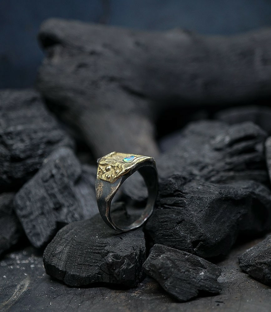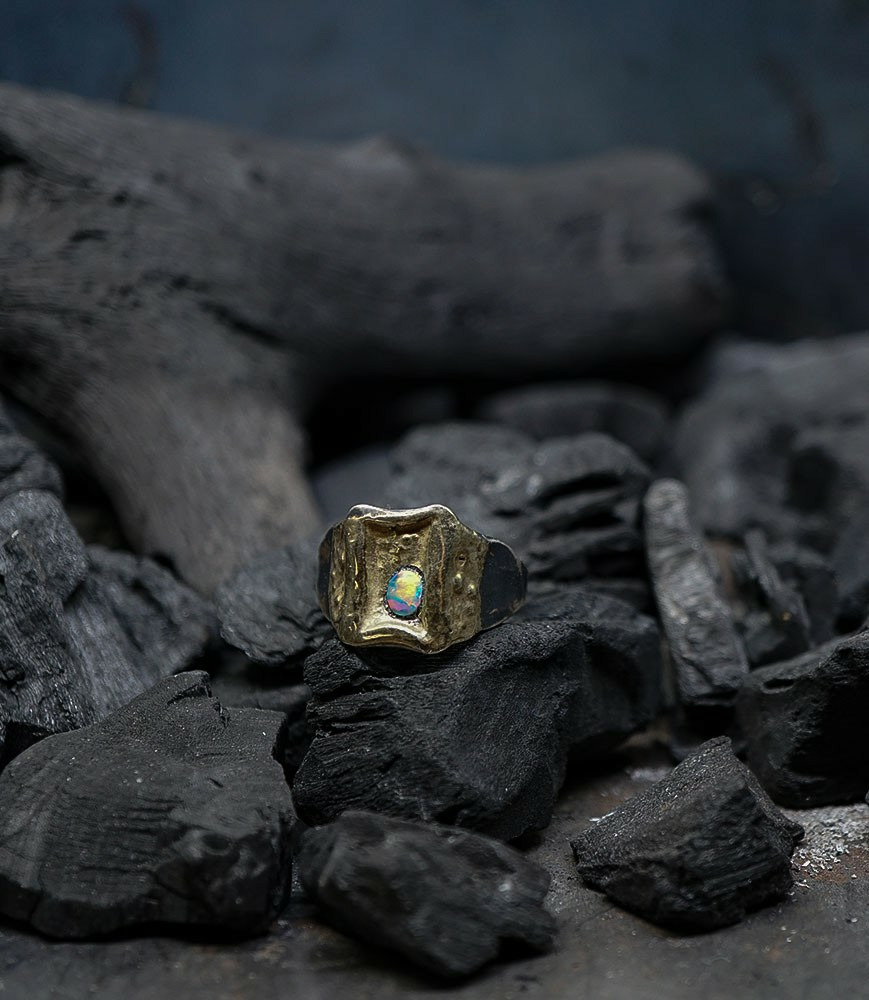 Héphaïstos Stones Collection - Bague Opale, Or et Argent Massif