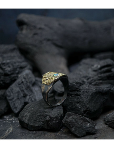 Unicité renforcée par la patine noircie appliquée sur l'argent 925/1000 qui s'estompe peu à peu avec le temps. Vivant, le bijou révèlera des zones où l'aspect brillant du métal reprendra ses droits.