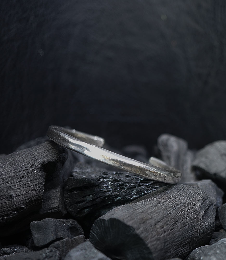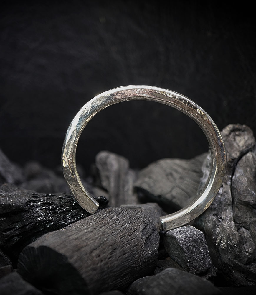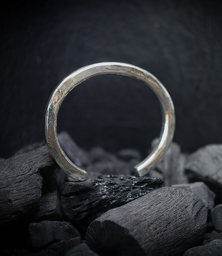 Ce bracelet jonc ouvert en argent massif est une pièce unique, entièrement façonnée à la main dans mon atelier.