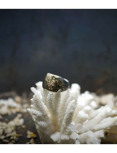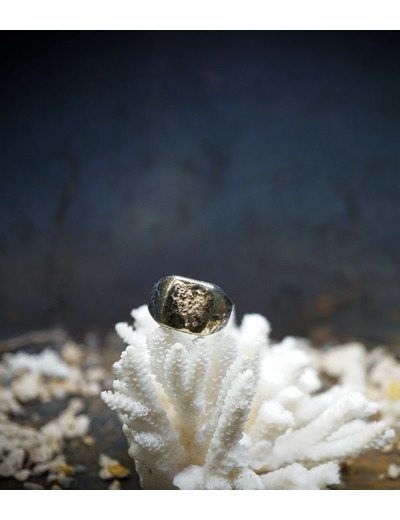 Parfois les stries dans le métal de la bague rappellent la superposition des couches sédimentaires géologiques que l'on peut observer dans les roches.