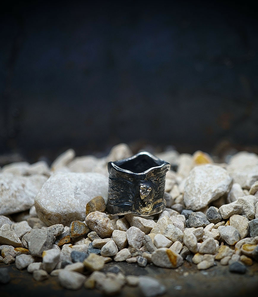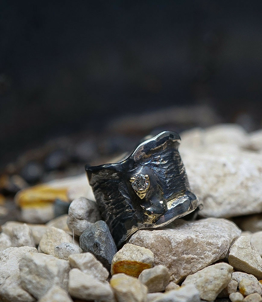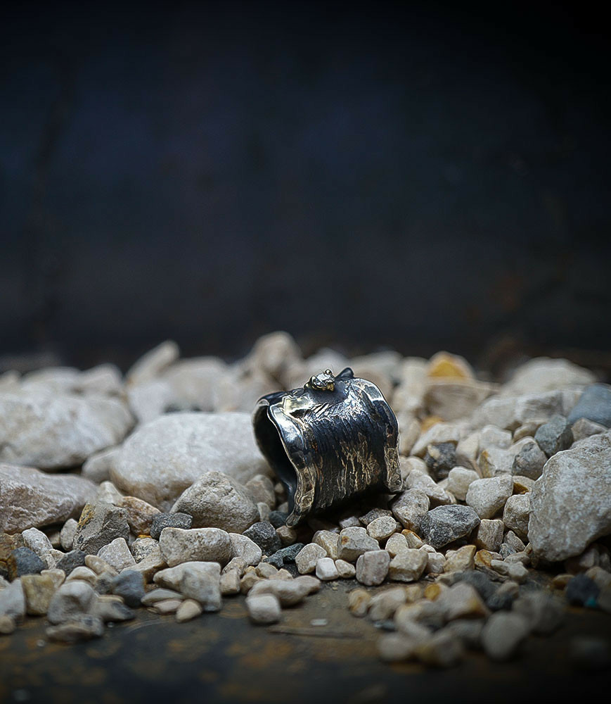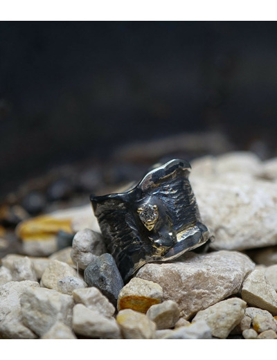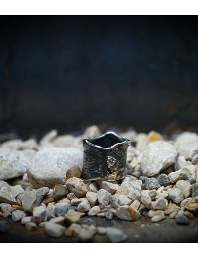 Valentine pour cette collection de bagues utilise une seule pièce d'argent au titre légal 925/1000 par création, qu'elle associe parfois a des pierres fines ou précieuses. Ce travail est réalisé à la façon de l'art populaire japonais l'Origami.