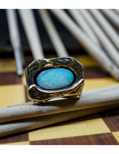 Les finitions minutieuses et l'harmonie des matériaux mettent en lumière la beauté naturelle de l'opale, transformant ce bijou en un trésor intemporel, conçu pour sublimer celles et ceux qui recherchent une pièce unique, élégante.