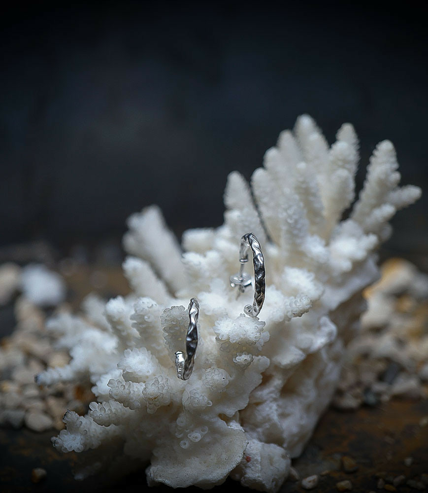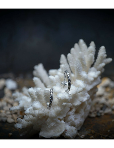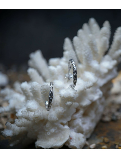 Ces créoles martelées en argent sont le choix parfait pour celles qui apprécient les bijoux délicats mais avec une touche d'originalité texturée, apportant une note lumineuse et subtilement travaillée.