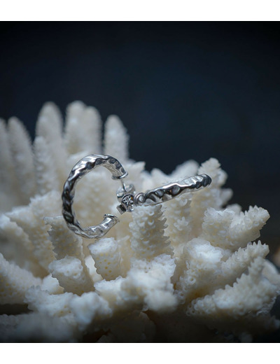 Ces créoles martelées en argent sont l'accessoire idéal pour celles qui recherchent un bijou à la fois original, élégant et facile à porter au quotidien, ajoutant une touche texturée et lumineuse à leur allure.