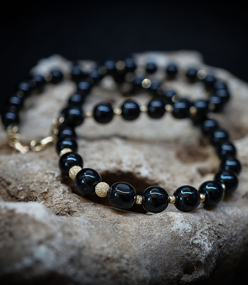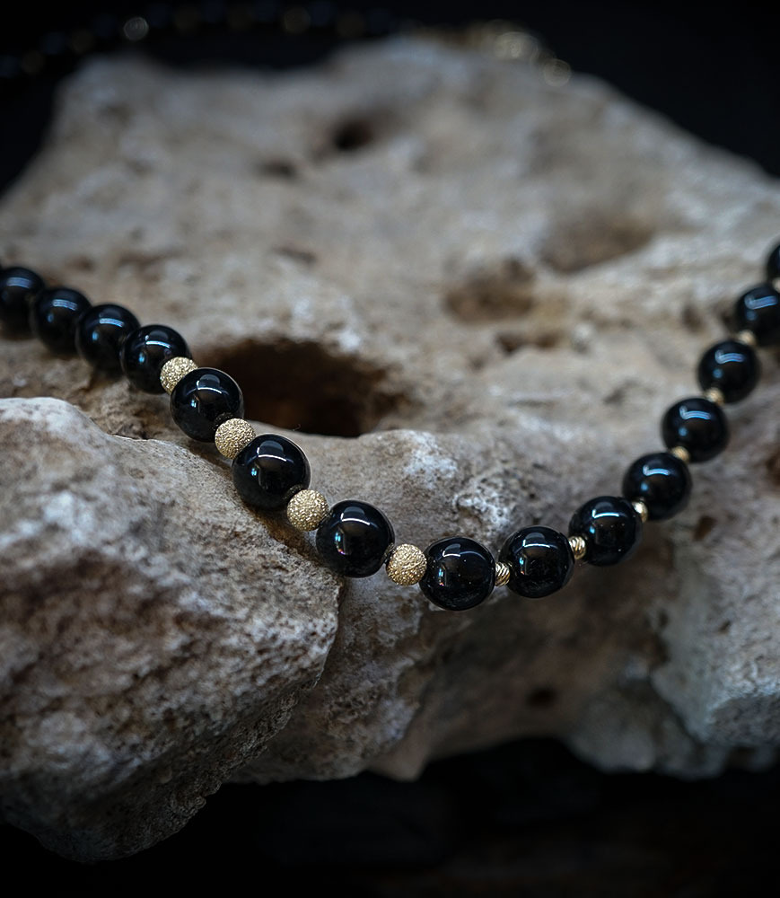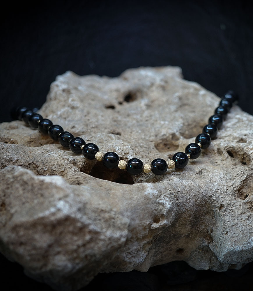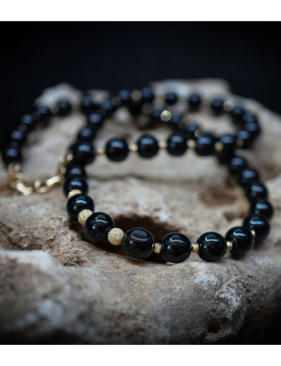 Laissez-vous séduire par la profondeur mystérieuse de l'onyx, rehaussée par l'éclat précieux de l'or.