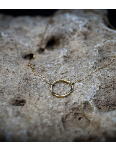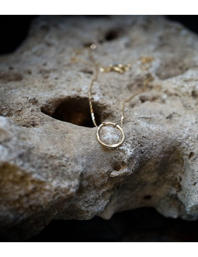 Découvrez ce collier avec un anneau martelet en or de Valentine, une pièce phare de sa marque de bijoux bruts, Lovely Storm.