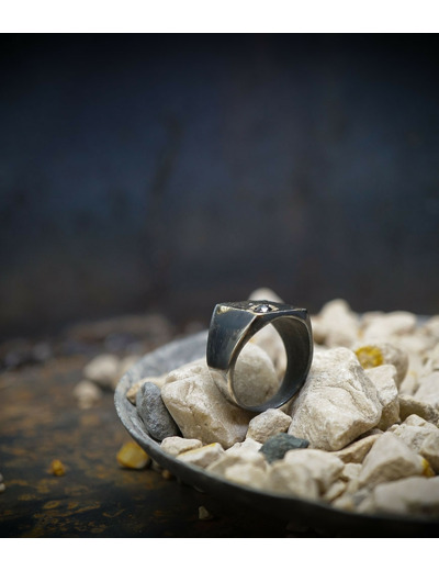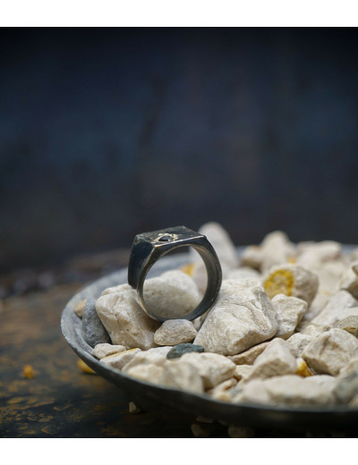 Parfois les stries dans le métal de la bague rappellent la superposition des couches sédimentaires géologiques que l'on peut observer dans les roches.