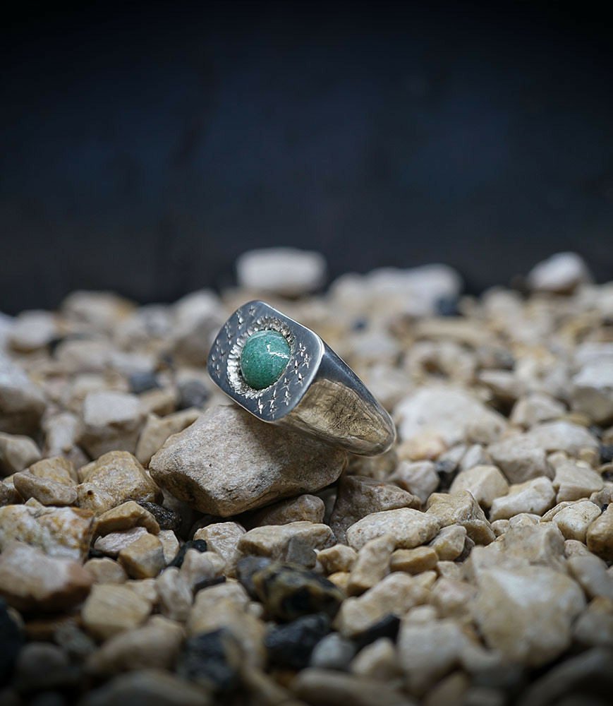 L'argent, quant à lui, avec son éclat blanc et lumineux, ajoute une touche de raffinement et d'élégance, tout en offrant un cadre solide et durable pour les pierres précieuses.
