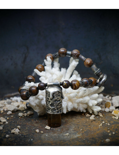 Ces pierres naturelles, réputées pour leurs reflets multicolores et leur énergie apaisante, se marient harmonieusement à l'argent, créant un contraste saisissant.