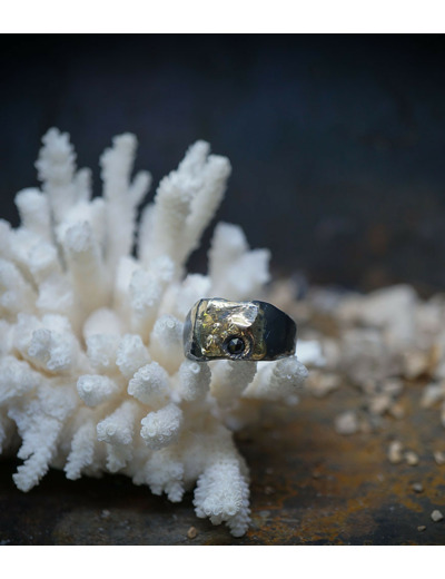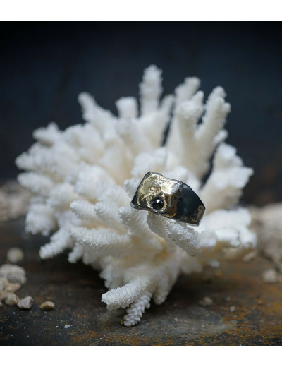 Parfois les stries dans le métal de la bague rappellent la superposition des couches sédimentaires géologiques que l'on peut observer dans les roches.