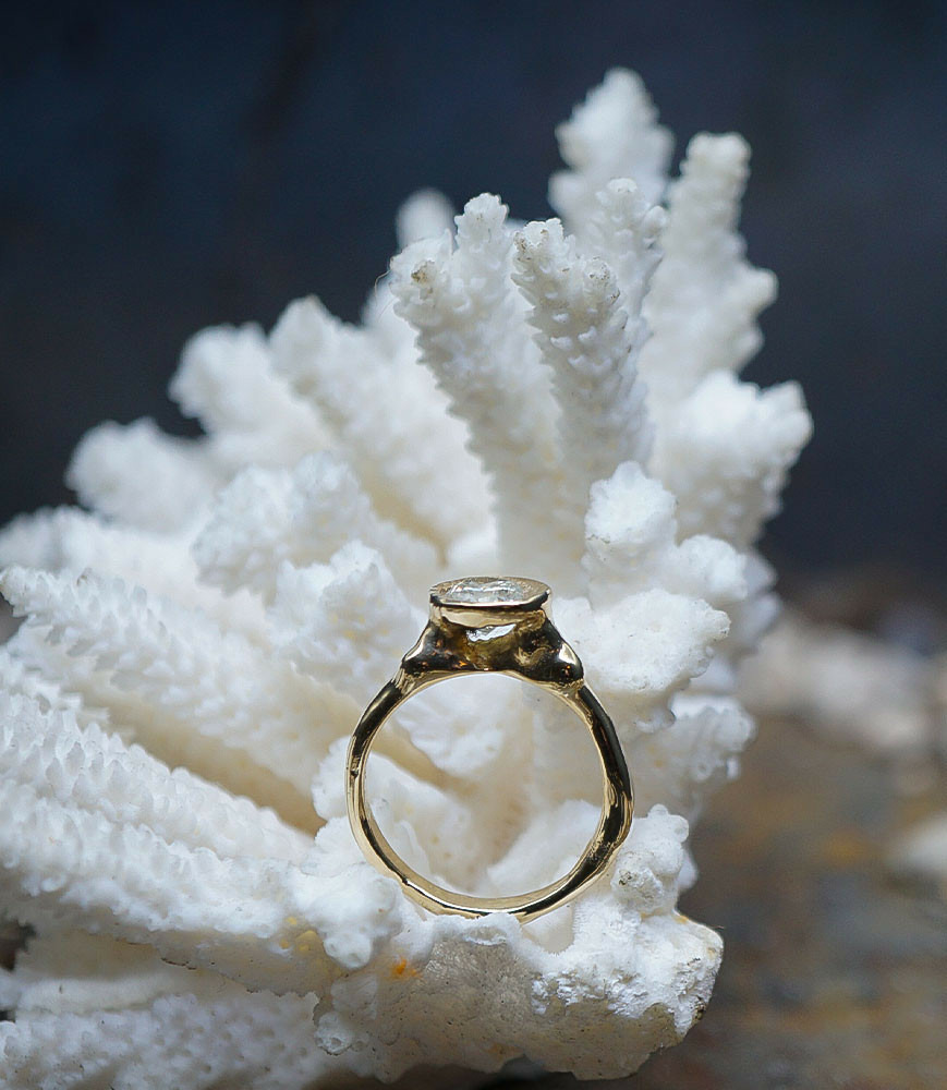 Ce bijou unique marie la force et la pureté du diamant à la douceur et à la chaleur de l'or, incarnant une beauté intemporelle et contemporaine.