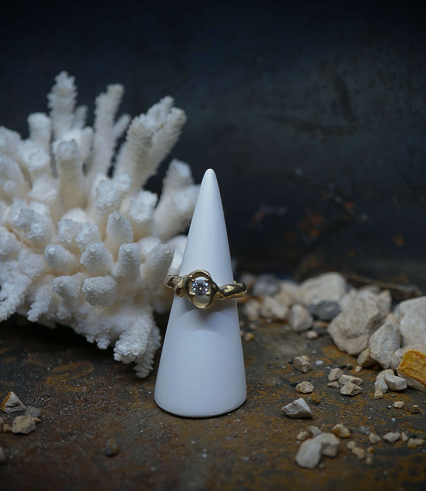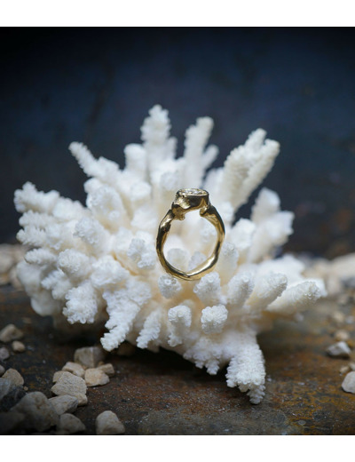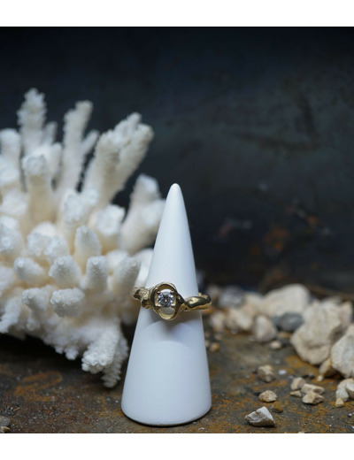 Le solitaire que Valentine a créé, conçue de manière délicate, comme si l'or s'était fondu et formé autour du diamant.