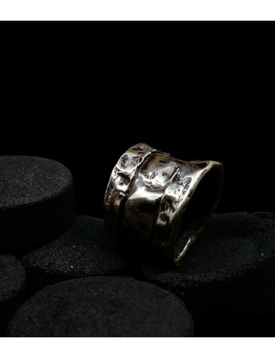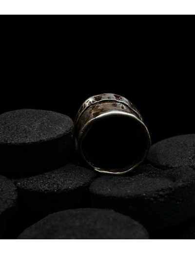 Anthony Barrouyer pour cette collection de bagues utilise une seule pièce d'argent au titre légal 925/1000 par création, qu'il associe parfois à de la "côte de maille" en argent 925/1000. Il peut aussi sertir des pierres fines ou précieuses sur certaines pièces, en repliant simplement les bords de la bague sur le minéral.