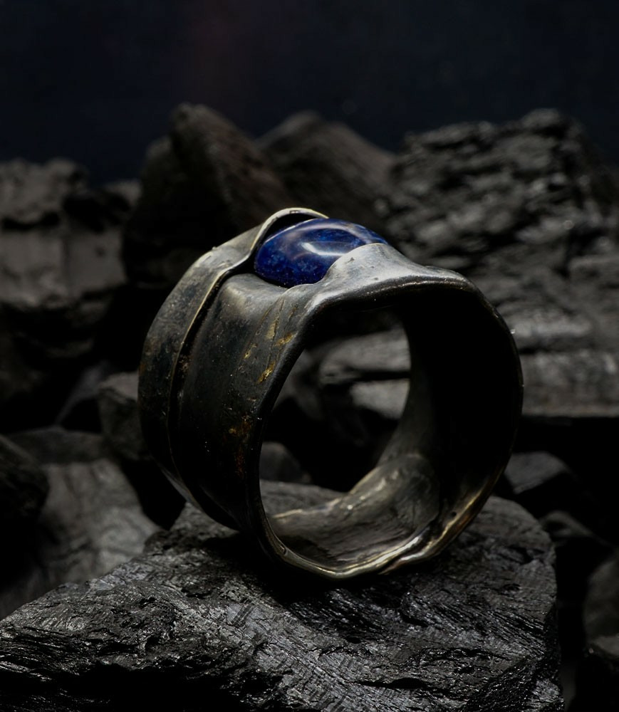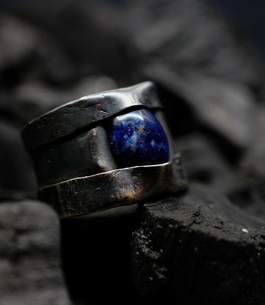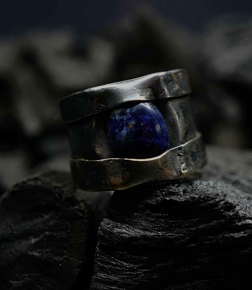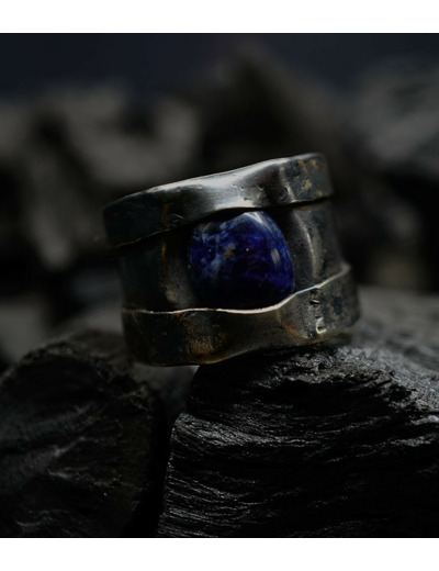 Anthony pour cette collection de bagues utilise une seule pièce d'argent au titre légal 925/1000 par création, qu'il associe parfois à de la "côte de maille" en argent 925/1000. Il peut aussi sertir des pierres fines ou précieuses sur certaines pièces, en repliant simplement les bords de la bague sur le minéral.