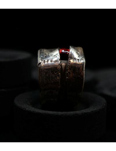 Anthony pour cette collection de bagues utilise une seule pièce d'argent au titre légal 925/1000 par création, qu'il associe parfois à de la "côte de maille" en argent 925/1000. Il peut aussi sertir des pierres fines ou précieuses sur certaines pièces, en repliant simplement les bords de la bague sur le minéral.