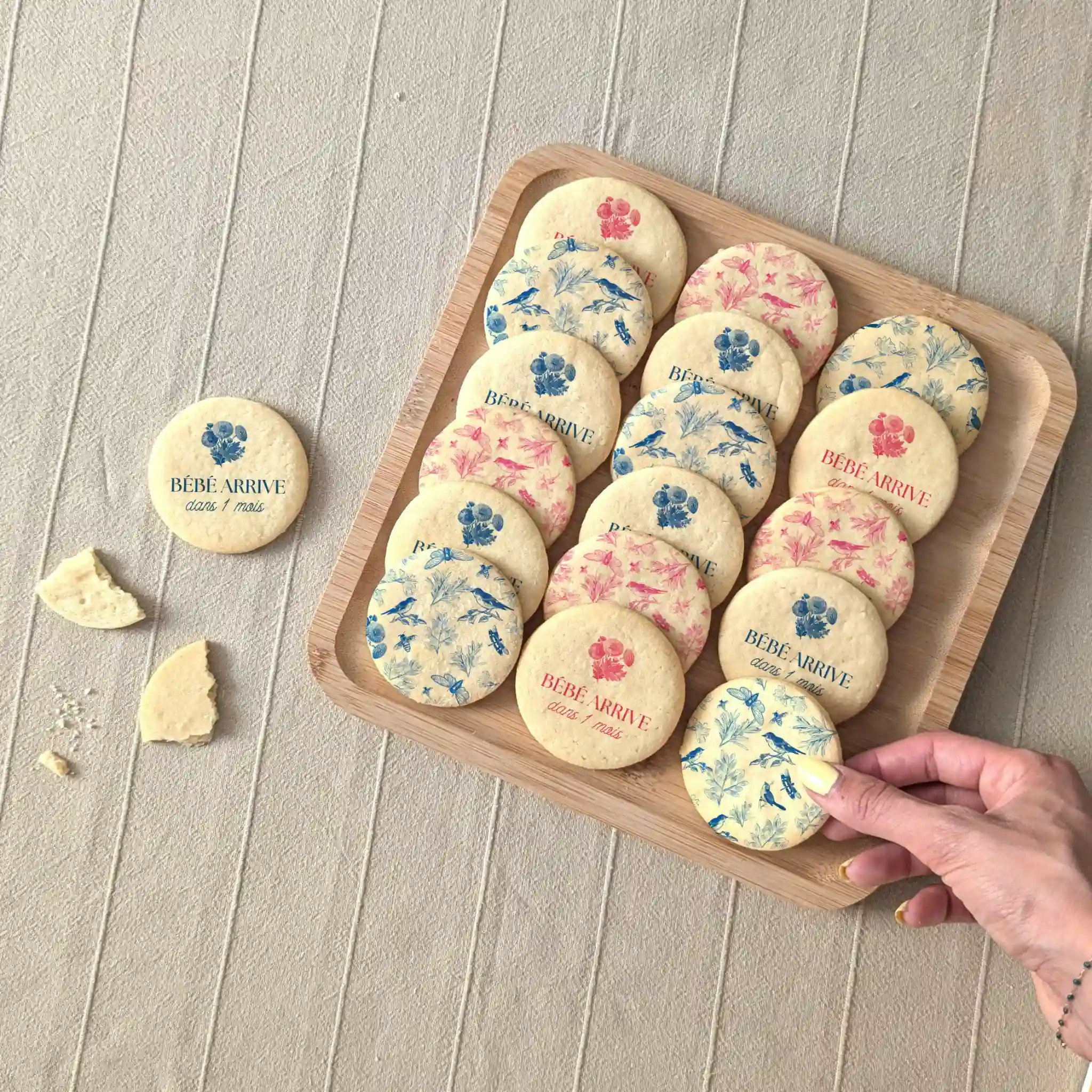 Célébrez l’arrivée de bébé avec un cadeau invité baby shower ou gender reveal aussi délicieux qu’émouvant. Nos biscuits personnalisés sont fabriqués en France dans notre atelier, à partir d’un sablé pur beurre fondant et imprimés avec des encres alimentaires de qualité.