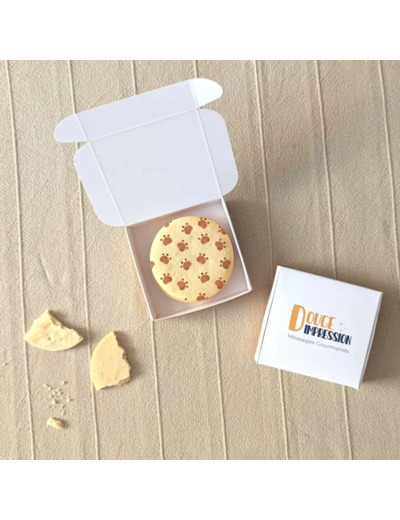 Une jolie boite cartonnée blanche refermable, prête à offrir, sans besoin d’emballage supplémentaire.