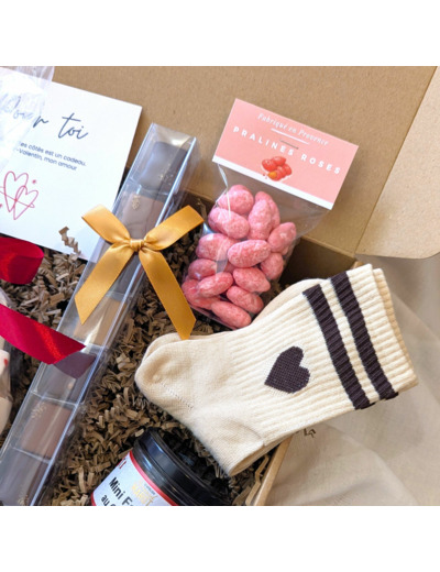 La box comprend une paire de chaussettes cœur, douces et confortables.