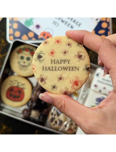 Chaque biscuit et bonbon est décoré ou personnalisé avec des visuels d'Halloween: crânes, citrouilles, chauves-souris et araignées, pour une expérience effrayante et gourmande à la fois !