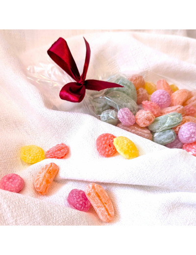 Pour compléter cette box romantique, un sachet de bonbons aux fruits à l’ancienne est inclus.