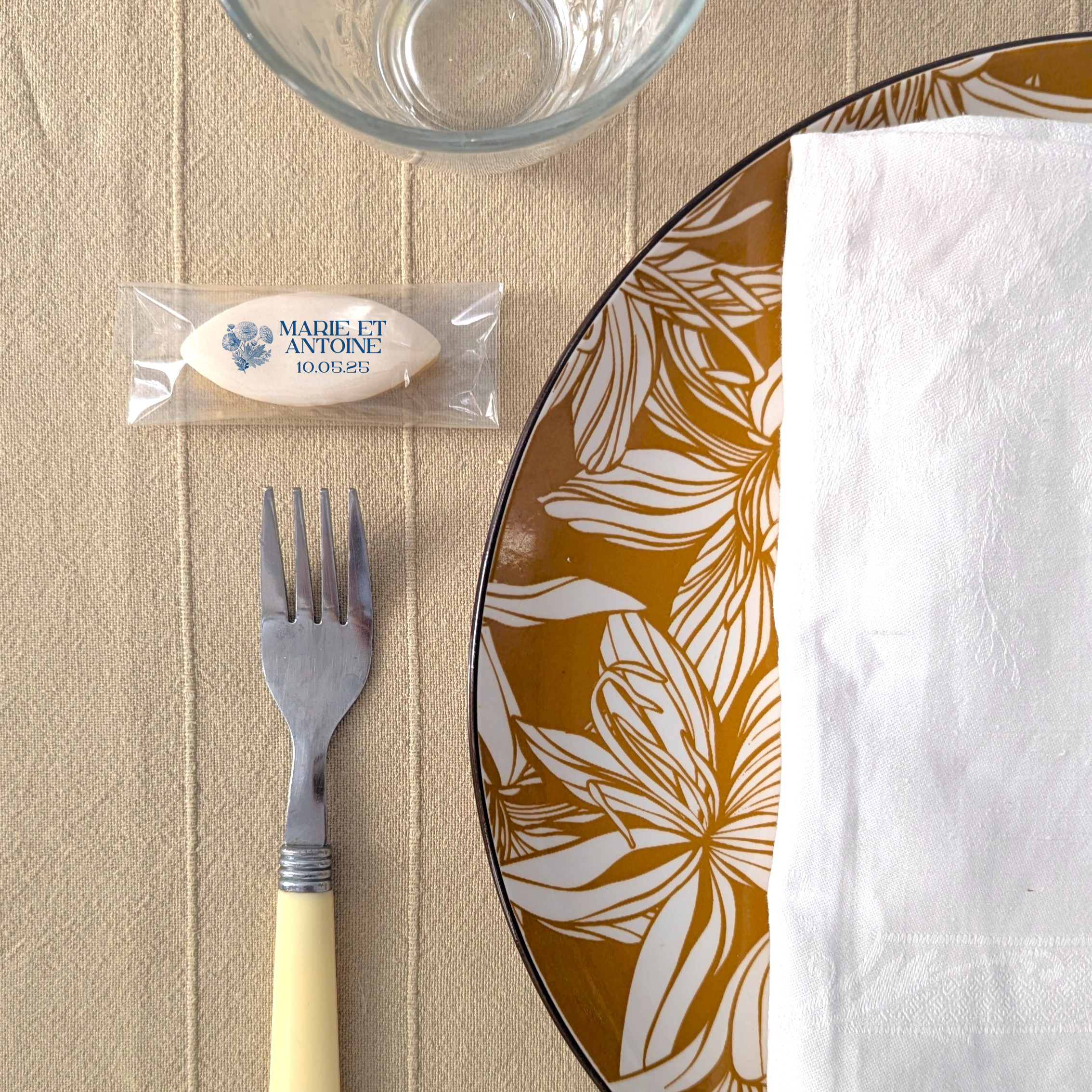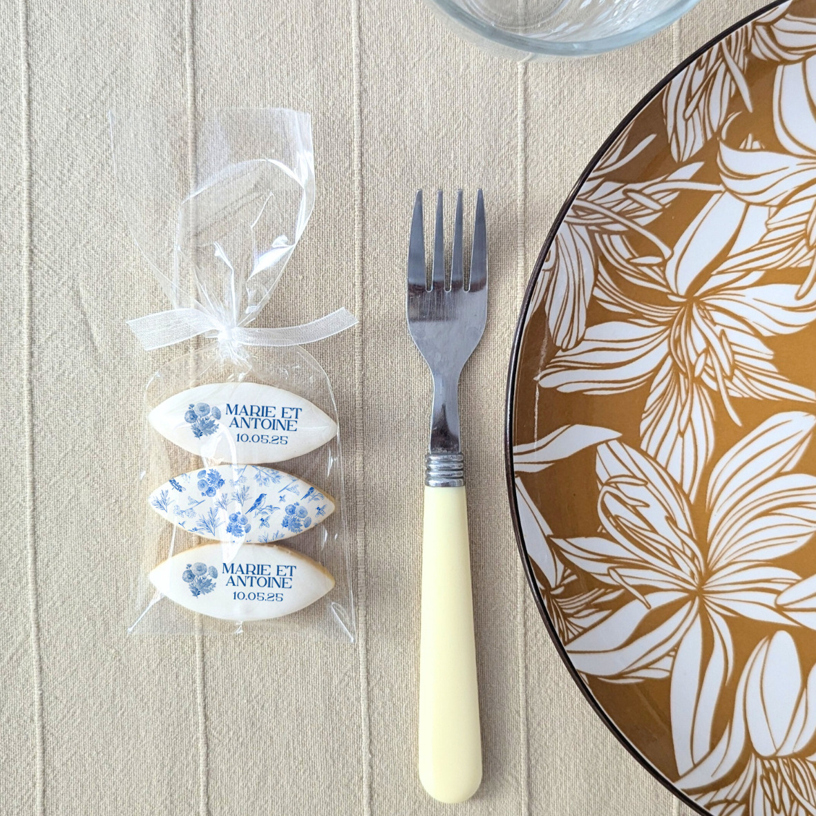 Élégamment présenté et imprimé avec vos prénoms ou un motif délicat, ce cadeau s’intègre parfaitement à une décoration de mariage sobre et élégante. Associez-le à nos biscuits personnalisés mariage chic pour un assortiment cohérent ou découvrez nos guimauves mariage chic pour varier les textures tout en gardant une harmonie visuelle. Envie d’un autre univers ? Explorez aussi notre collection de cadeaux invités mariage bohème ou retournez à notre sélection complète de cadeaux invités personnalisés pour trouver l’inspiration.