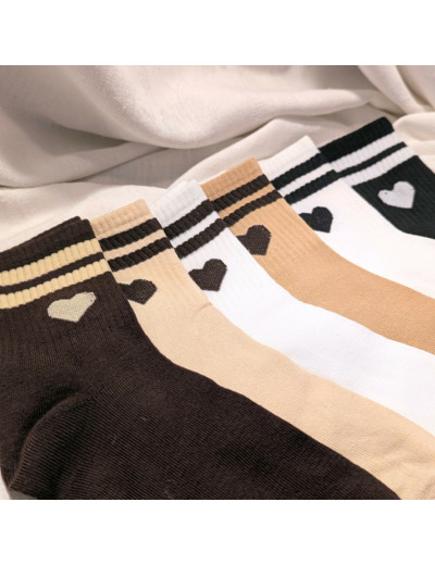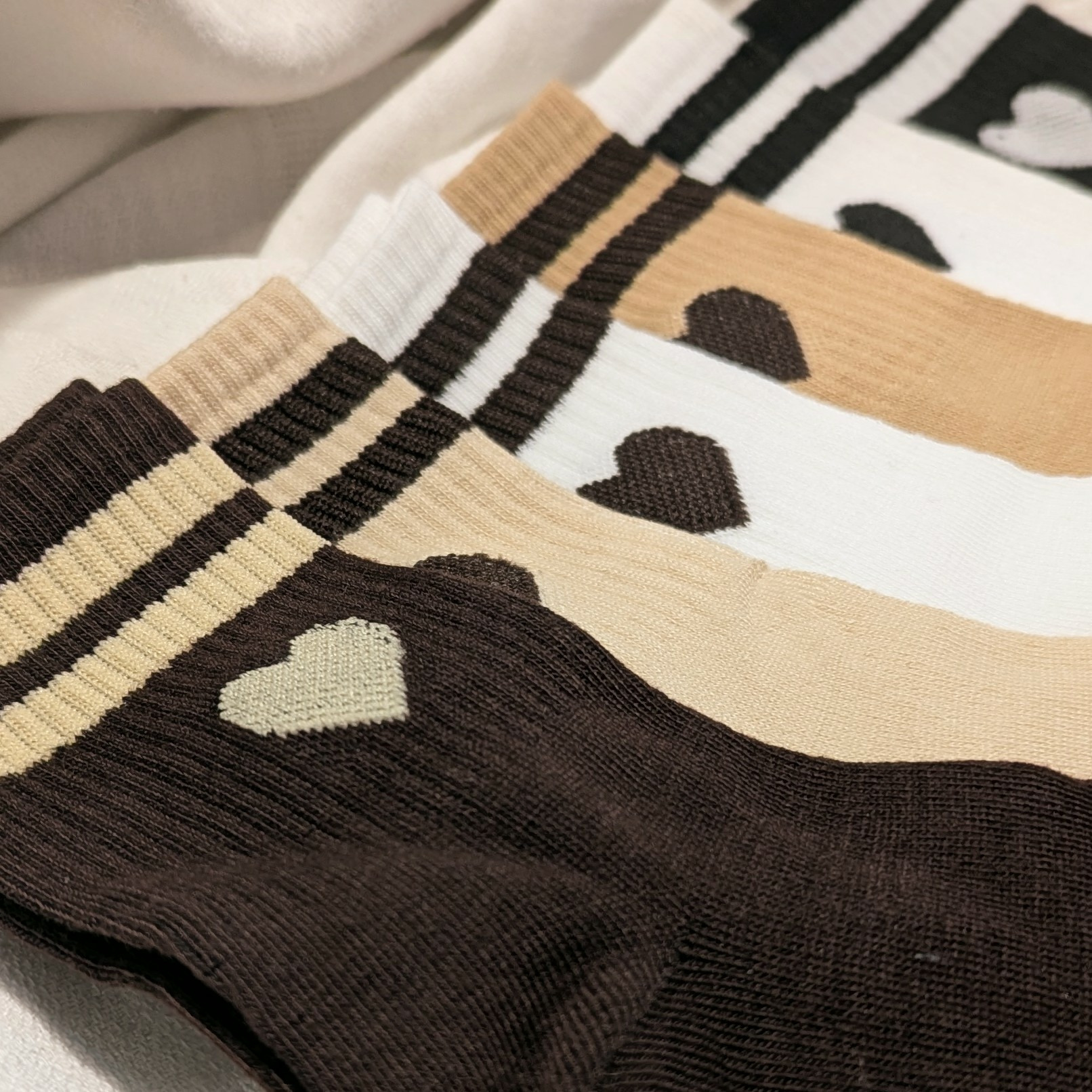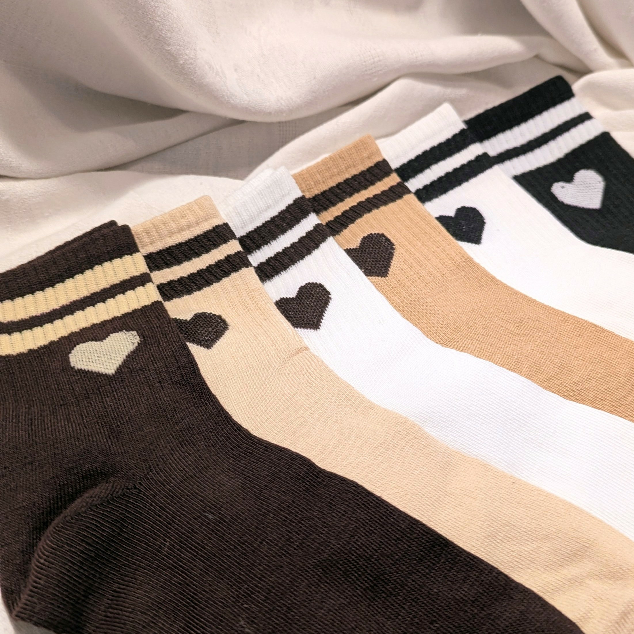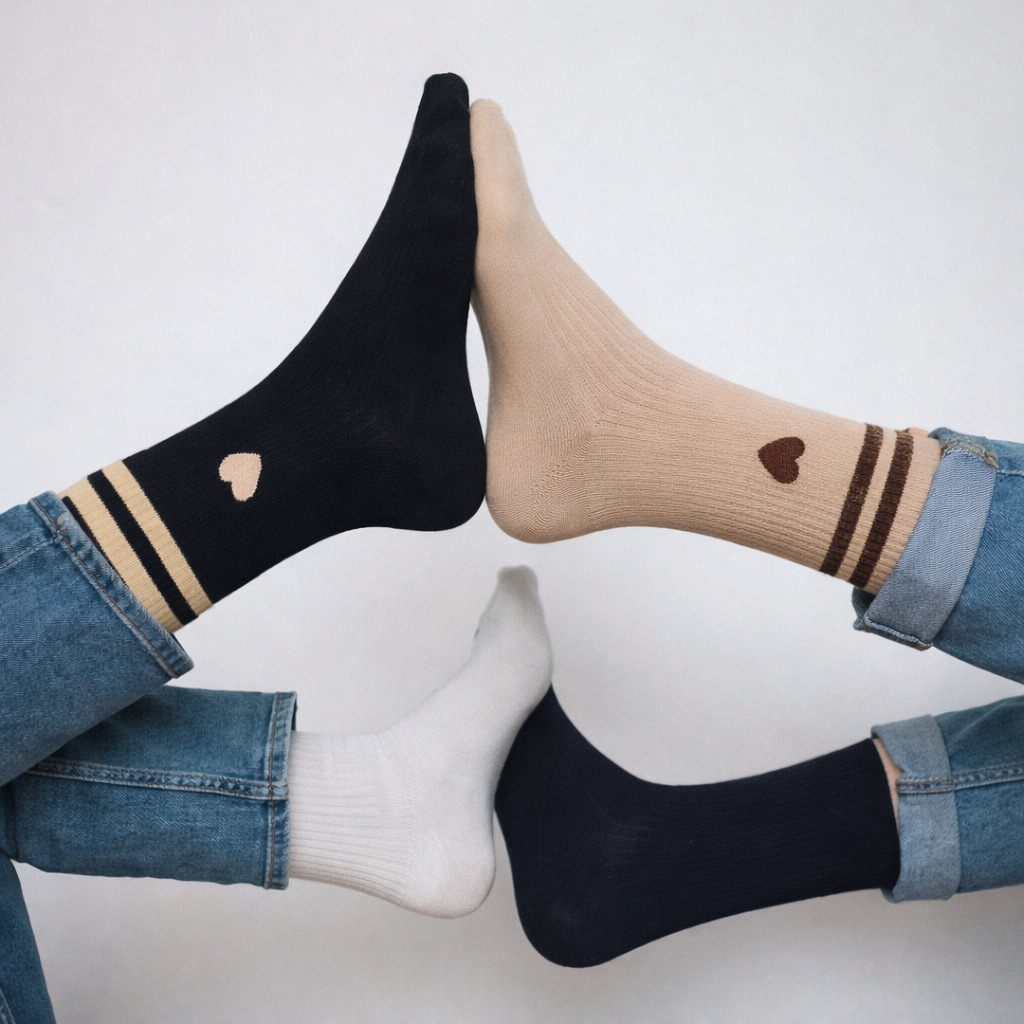 Chaque paire est décorée d’un cœur contrasté, discret mais graphique, pour s’adapter à tous les styles, féminins comme masculins.