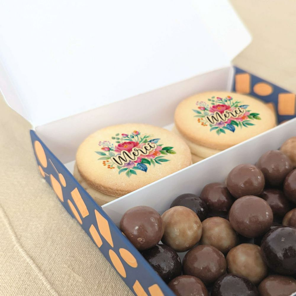 Coffret Biscuits Personnalisés Et Chocolats – Merci