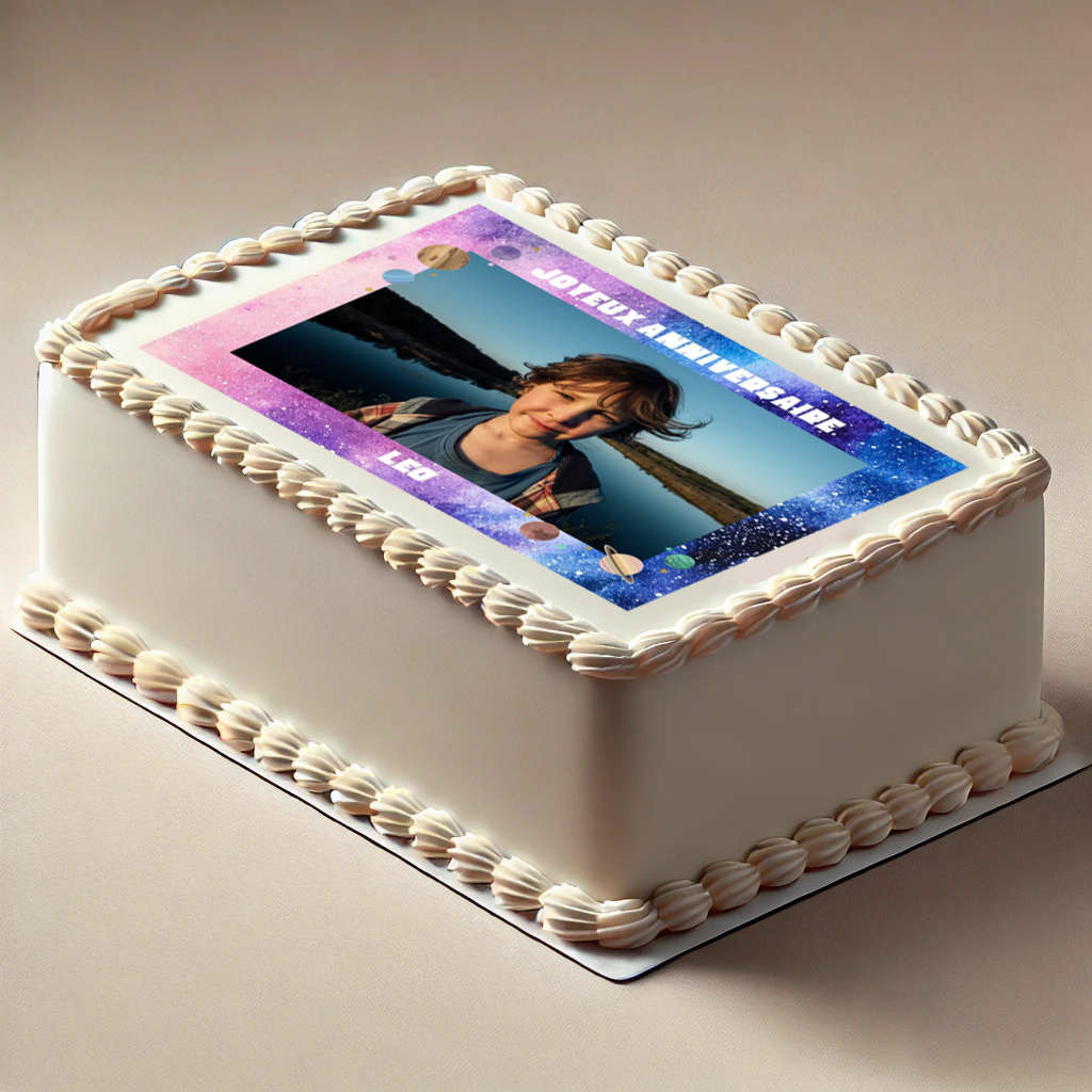 Offrez un voyage intergalactique avec notre feuille comestible sur le thème de l’espace. Idéale pour un gâteau d’anniversaire cosmique.