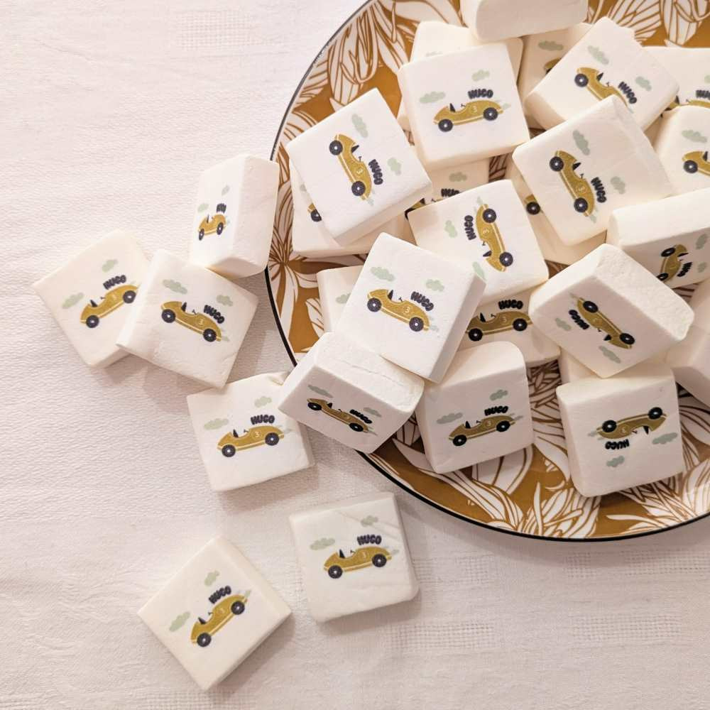 🎂 Anniversaire : des guimauves imprimées à leur prénom ou leur âge comme cadeau invité anniversaire. → Parcourir nos idées cadeaux invités anniversaire