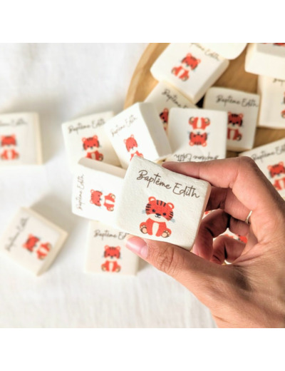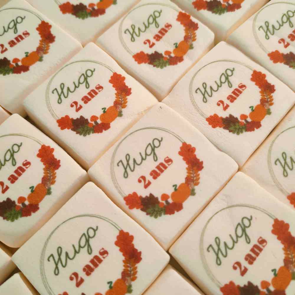 🍼 Naissance & baby shower : annoncez l’arrivée de bébé avec des chamallows imprimés “C’est une fille/garçon” ou avec sa photo. → Explorer aussi nos cadeaux invités baby shower