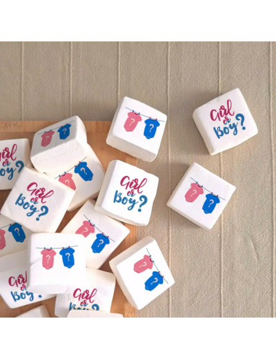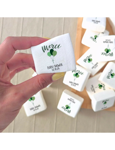Envie d’une décoration gourmande et originale pour votre fête prénatale ? Nos guimauves personnalisées baby shower et gender reveal sont de véritables petits nuages de douceur qui sublimeront votre table. Moelleuses, délicatement parfumées à la vanille, elles sont imprimées avec des encres alimentaires comestibles pour afficher un message tendre ou un visuel thématique.