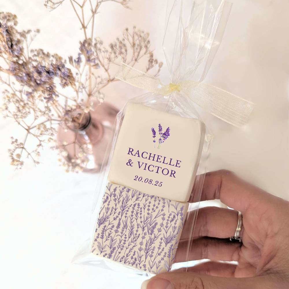 Optez pour une alternative chic et originale aux dragées avec nos guimauves décorées aux motifs lavande. Un cadeau élégant et authentique qui rappellera à vos invités la magie de votre mariage en Provence.