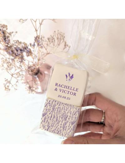 Offrez à vos invités un souvenir gourmand et provençal avec notre duo de guimauves personnalisées – Thème Lavande. Inspiré des champs de lavande en fleur et du charme de la Provence, ce cadeau invité mariage allie raffinement, nature et douceur. Deux options au choix : une guimauve emballé individuellement ou deux guimauves en duo !