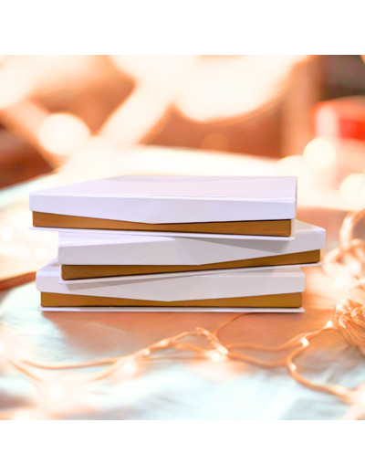Boîte rigide aimantée blanc texturé – intérieur bronze