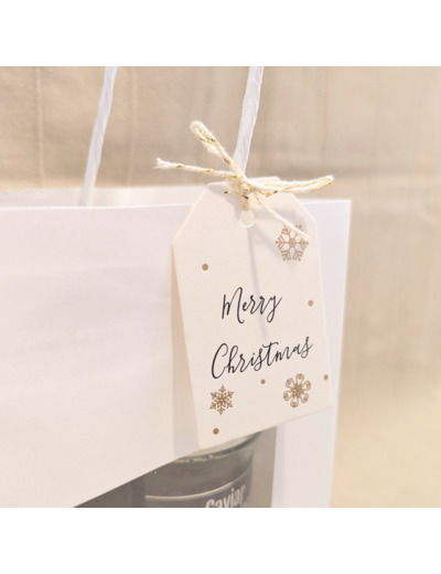 Présentation : Sachet blanc avec fenêtre transparente + étiquette Merry Christmas
