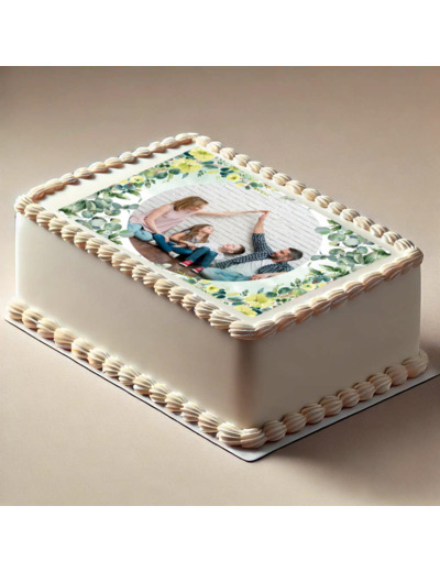 Pour vos événements personnalisez une feuille de sucre ou azyme avec la photo de votre choix et un décor de feuillage.