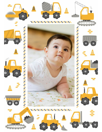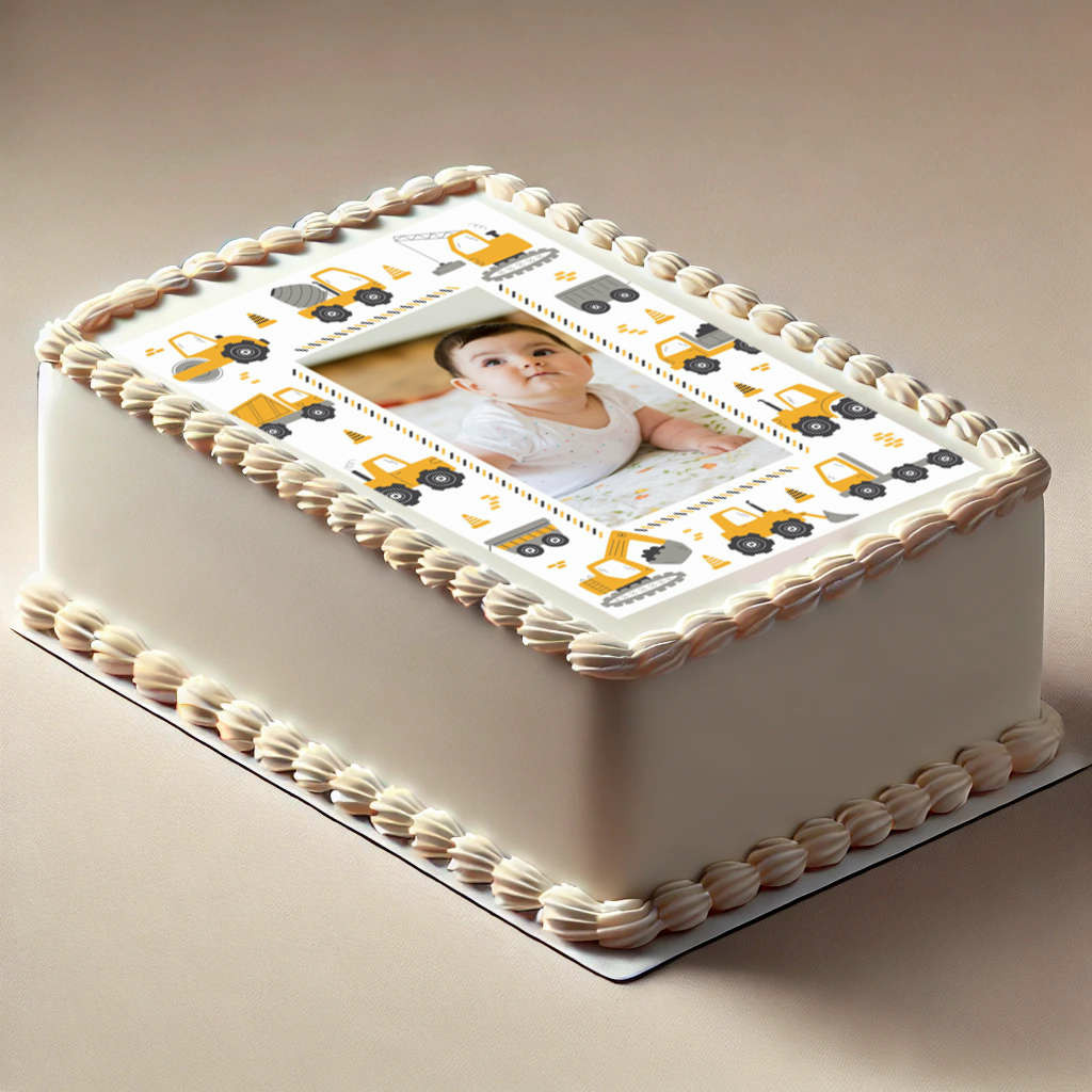 Ajoutez sa photo sur votre gâteau décoré d'un thème chantier