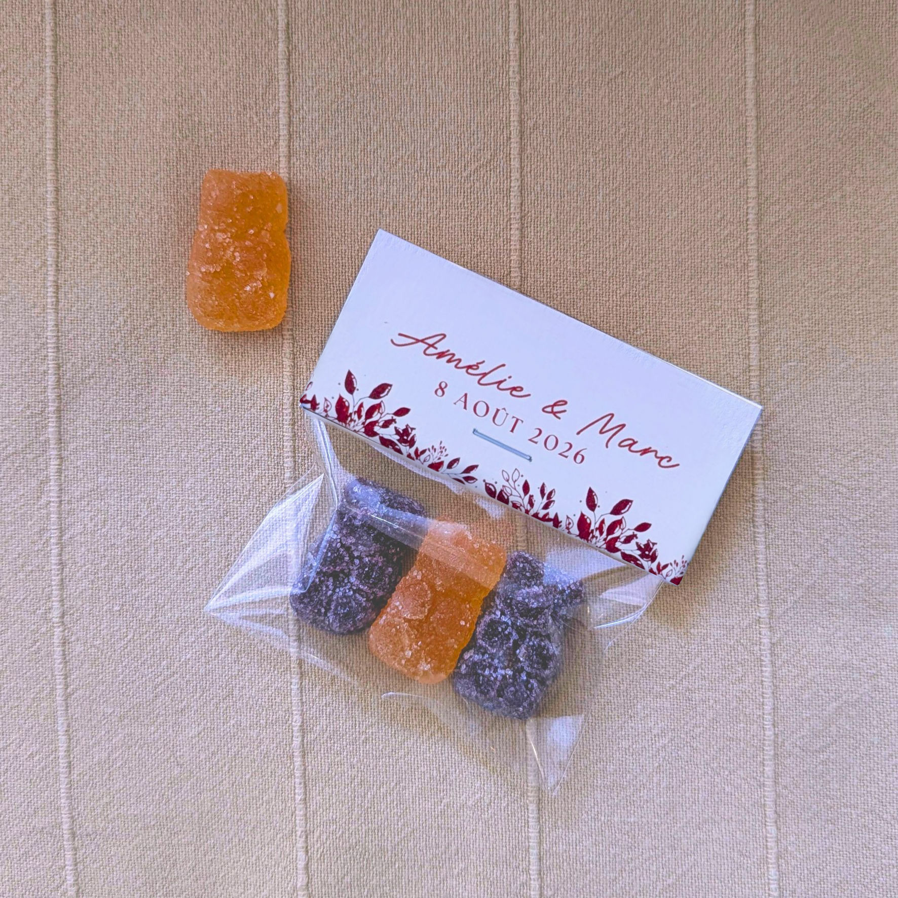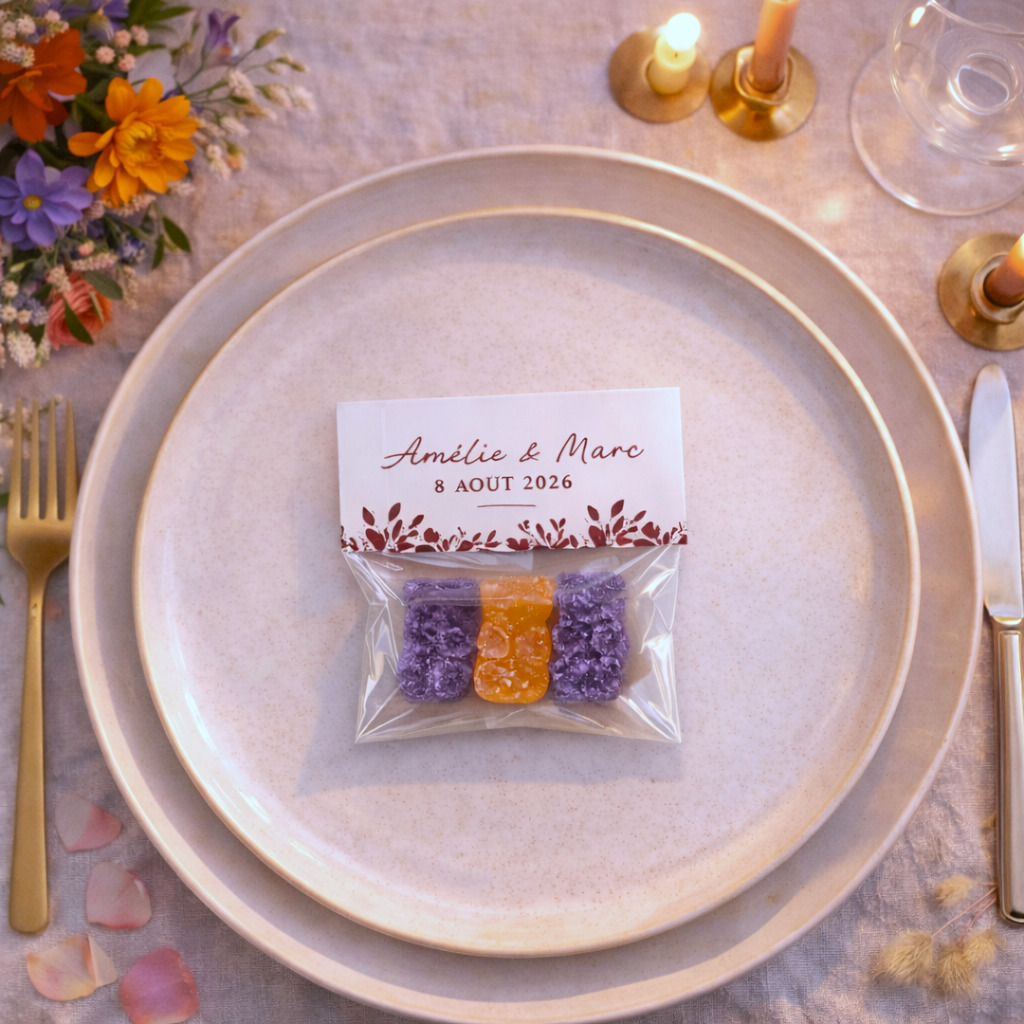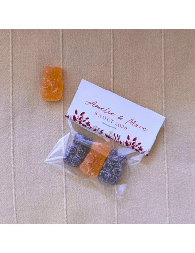 Envie de surprendre vos invités ? Nos oursons fruités en pâte de fruits apportent une touche originale, gourmande et pleine de douceur à votre mariage. Une alternative fraîche et colorée aux traditionnelles dragées.