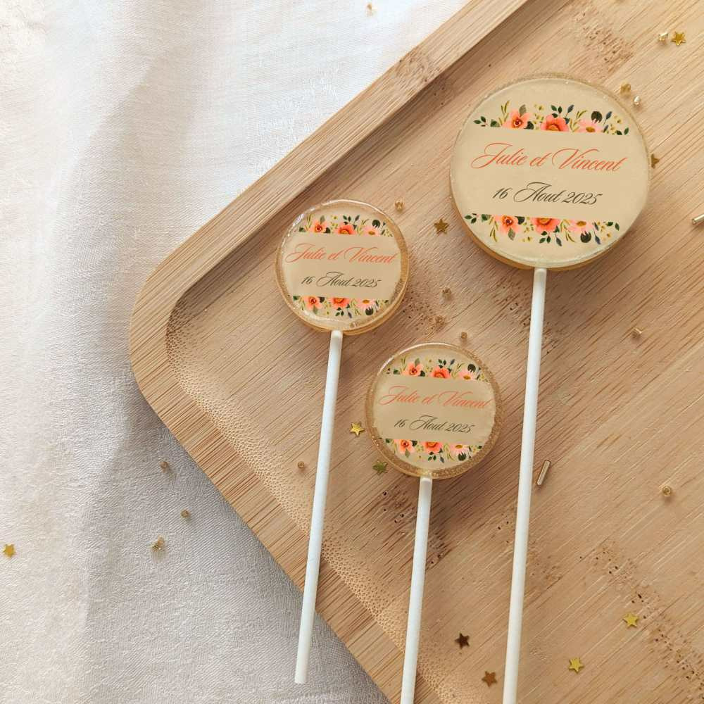 Commandez dès maintenant vos sucettes personnalisées – Thème Rouge Bohème et offrez à vos invités un souvenir élégant et printanier !