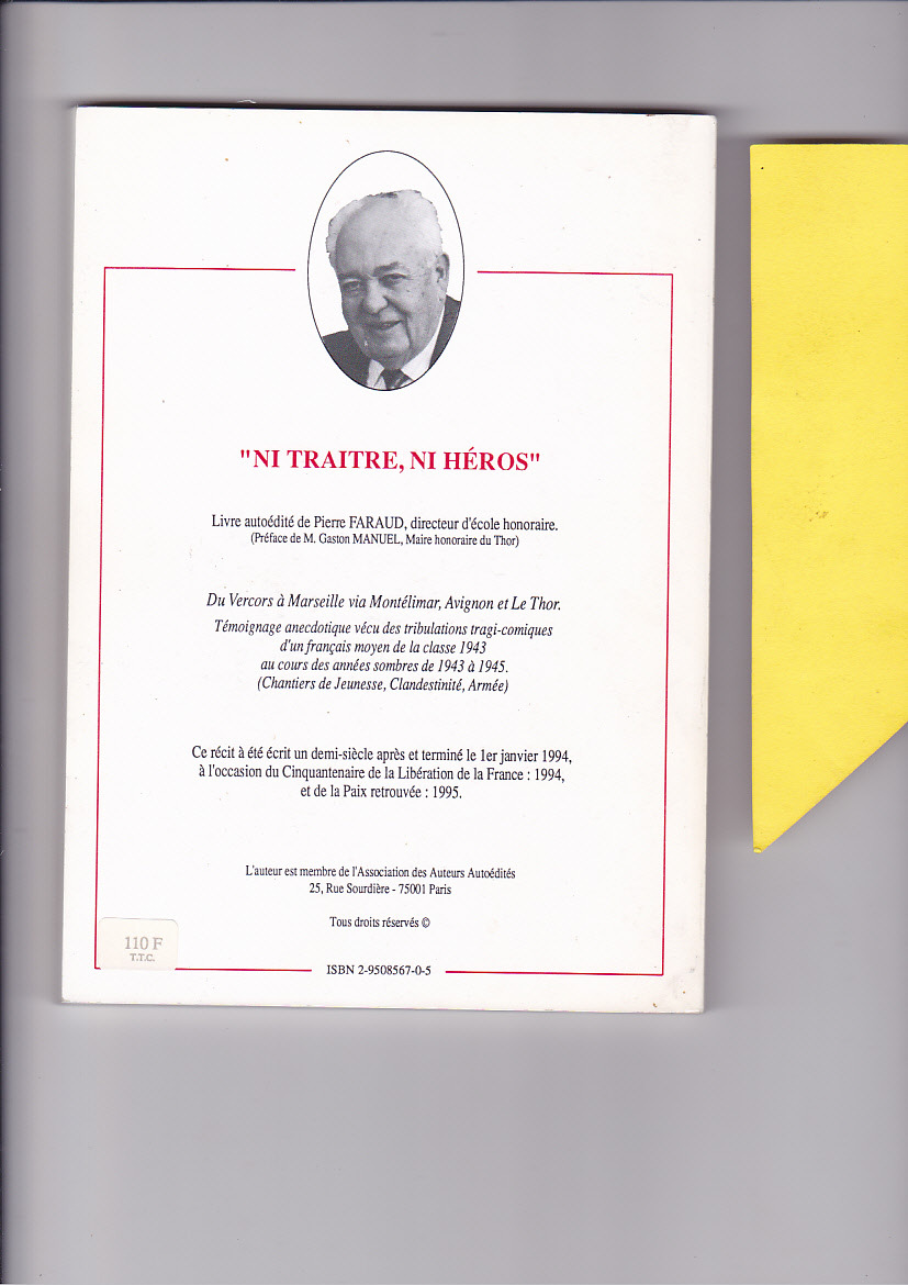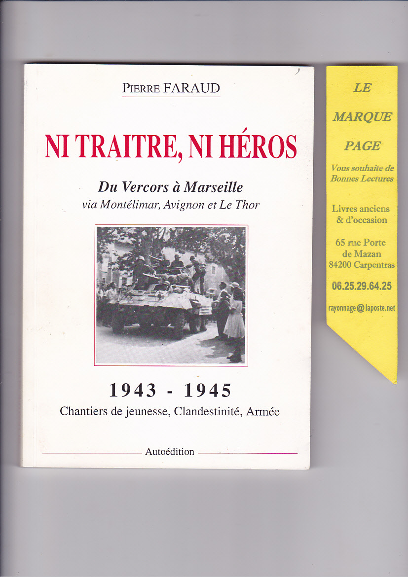 ( C2 ) 1994 , autoédition, 175 pages.. Bel envoi autographe de l'auteur sur page de Titre. Quelques légères traces sur la couverture ( voir mes scanners ) Intérieur très propre . Nombreuses photos in texte . L'auteur , originaire du Thor , y livre ses souvenirs de la périodes 1943 - 1945 .