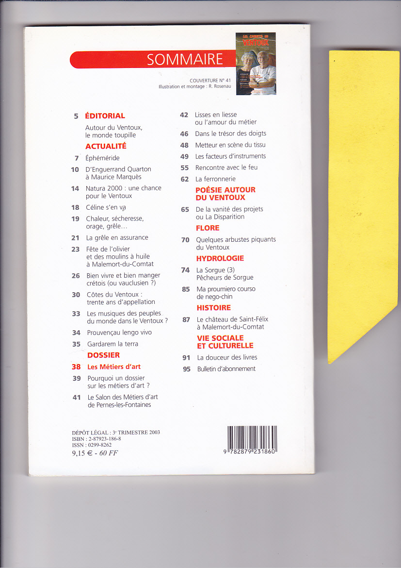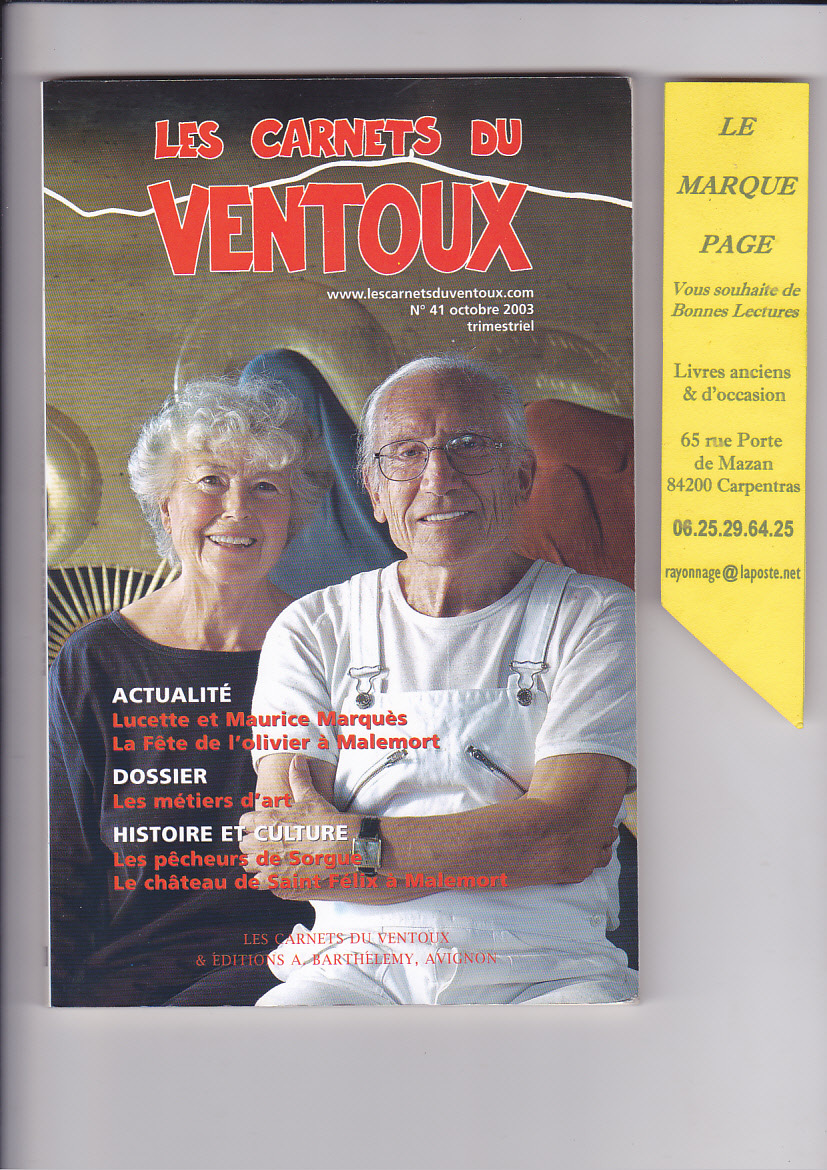 2003 , les carnets du Ventoux No 41 , 96 pages . Ensemble en très bon état , sans annotation. Voir mes scanners recto / verso . Le sommaire est au verso . Les Photos de référence sont miennes , ATTENTION aucun envoi ne sera fait en simple lettre . SELECTIONNEZ IMPÉRATIVEMENT UN PORT PRÉPAYÉ (colis Relay , shop2shop , colissimo ), cela permet un emballage plus soigné et évite les pertes . Retrait possible sur Carpentras