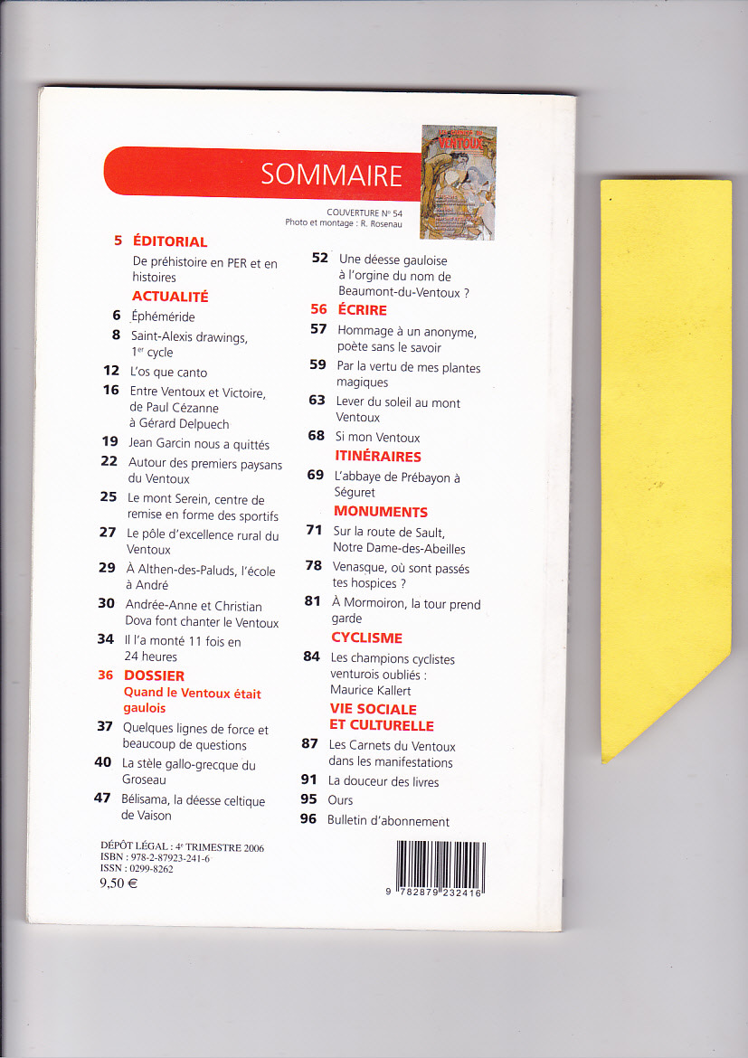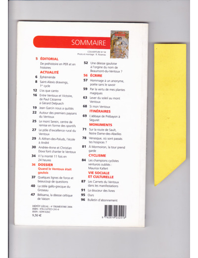 2006 , les Carnets du Ventoux No 54 , 95 pages. Ensemble en très bon état. Voir mes scanners recto / verso. Le sommaire est au verso . Les Photos de référence sont miennes , ATTENTION aucun envoi ne sera fait en simple lettre . SELECTIONNEZ IMPÉRATIVEMENT UN PORT PRÉPAYÉ (colis Relay , shop2shop , colissimo ), cela permet un emballage plus soigné et évite les pertes . Retrait possible sur Carpentras