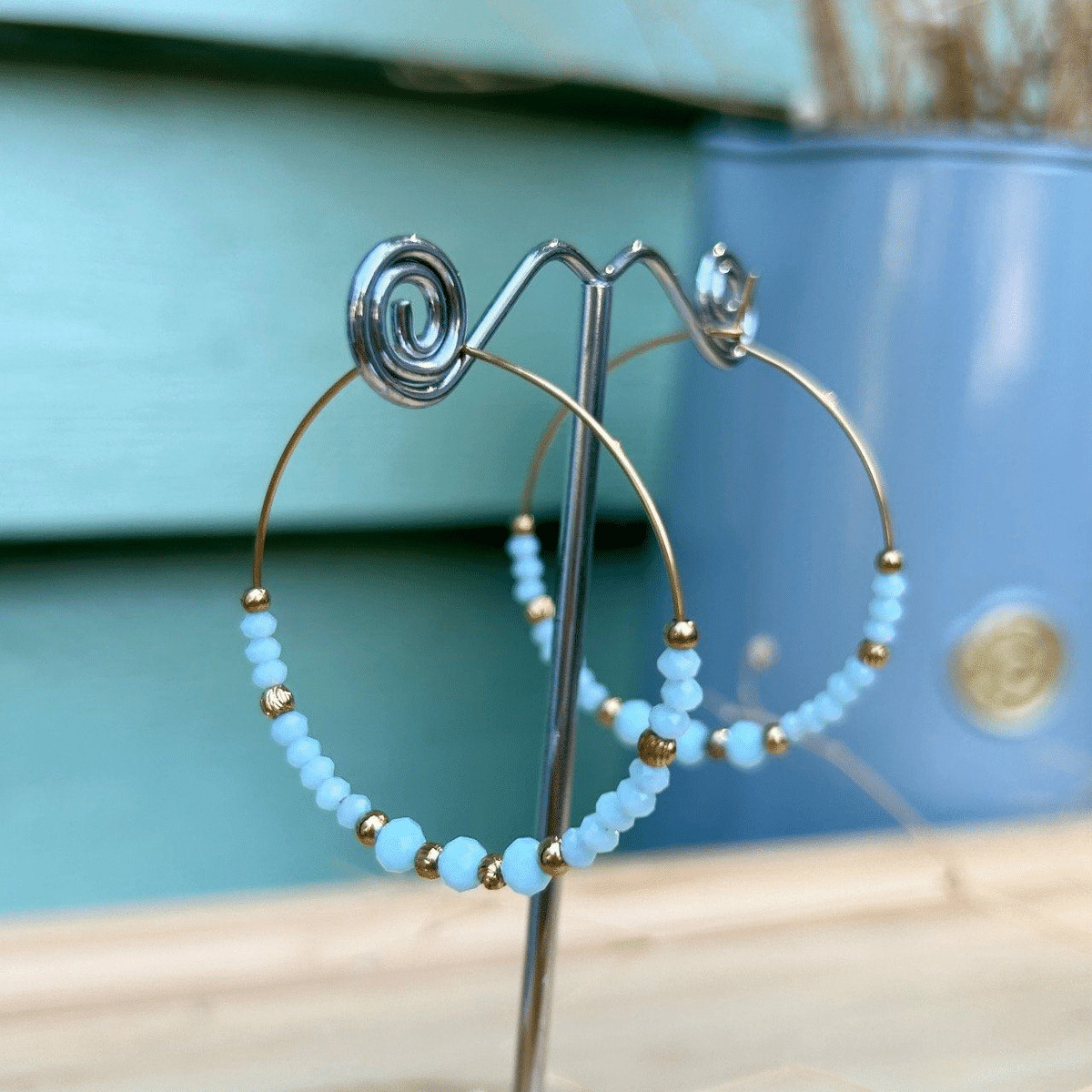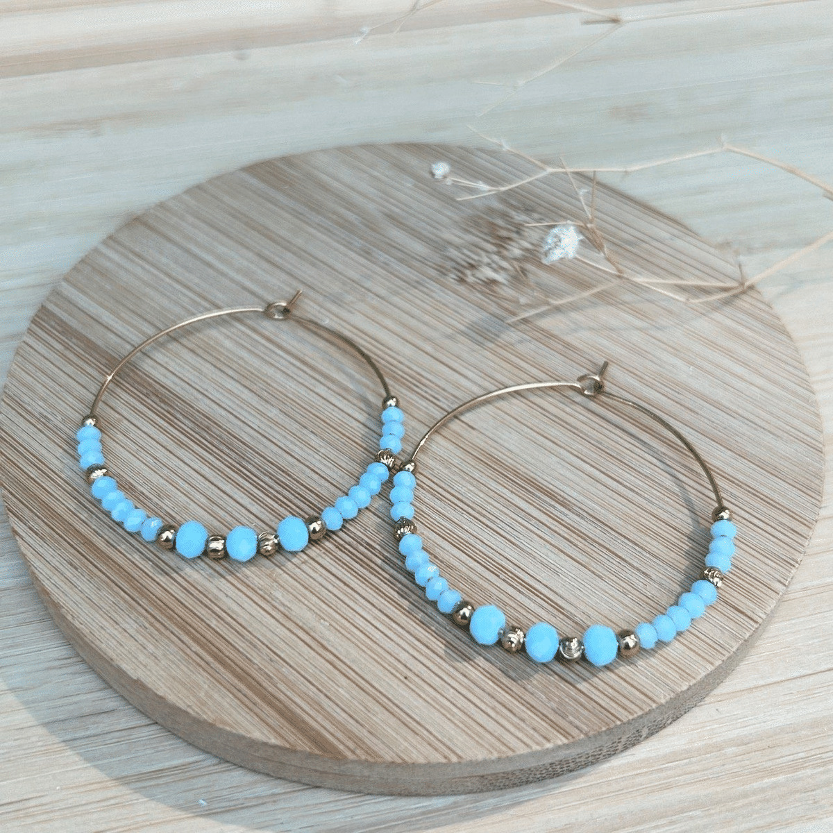 Créoles 40 mm en acier inoxydable avec perles bleues