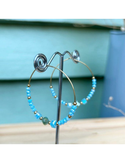 Créoles 40 mm en acier inoxydable avec perles bleues
