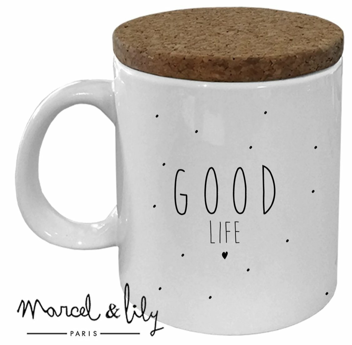 Mug en céramique "Good vibes" avec son couvercle en liège 100% écologique et fabriqué dans le sud ouest de la France pour garder les boissons bien au chaud ou pour s'en servir de sous tasse.Livré dans sa jolie boite en carton kraft recyclé.