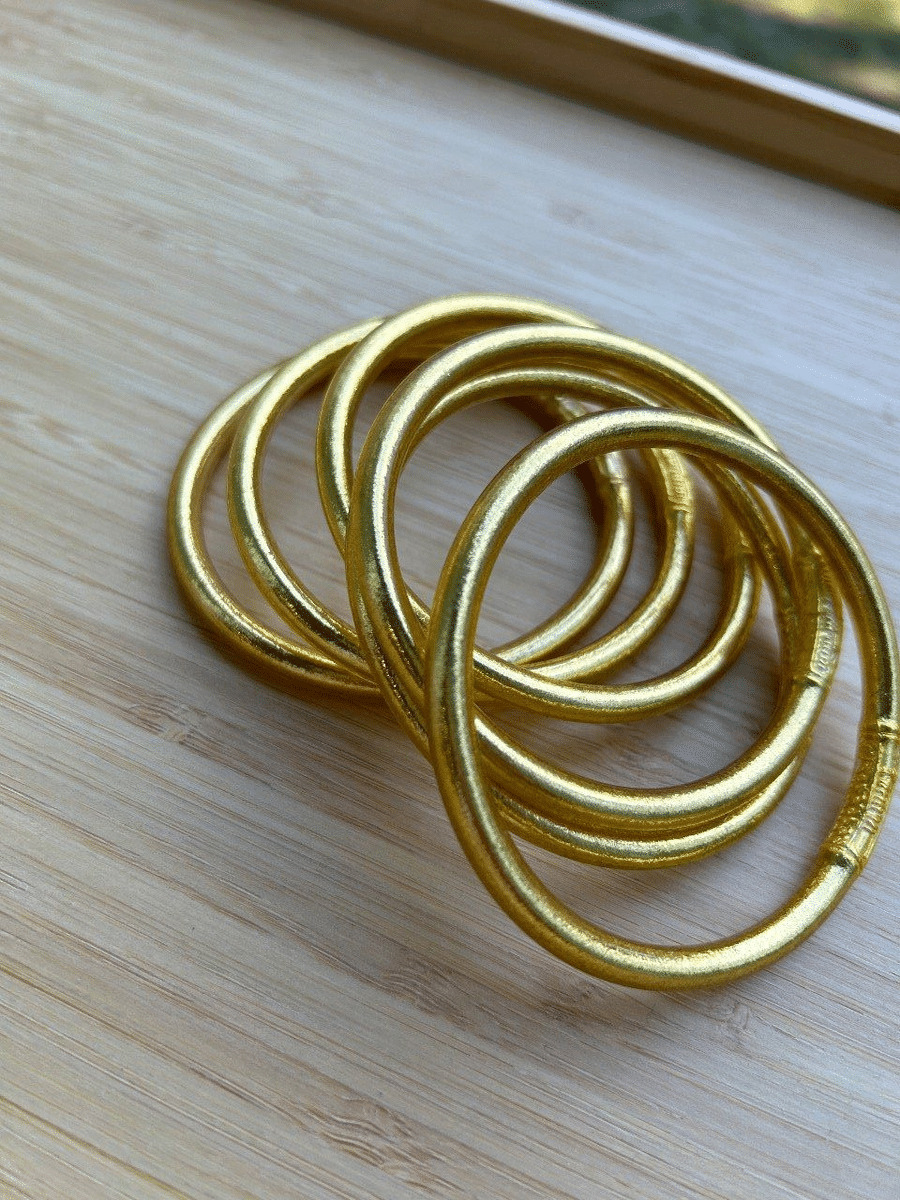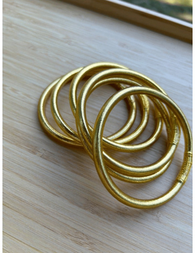 Jonc souple rempli de feuilles d’or, scellé avec un mantra gravé"Bonheur, Chance, Fortune et Amour" en thaïlandais
