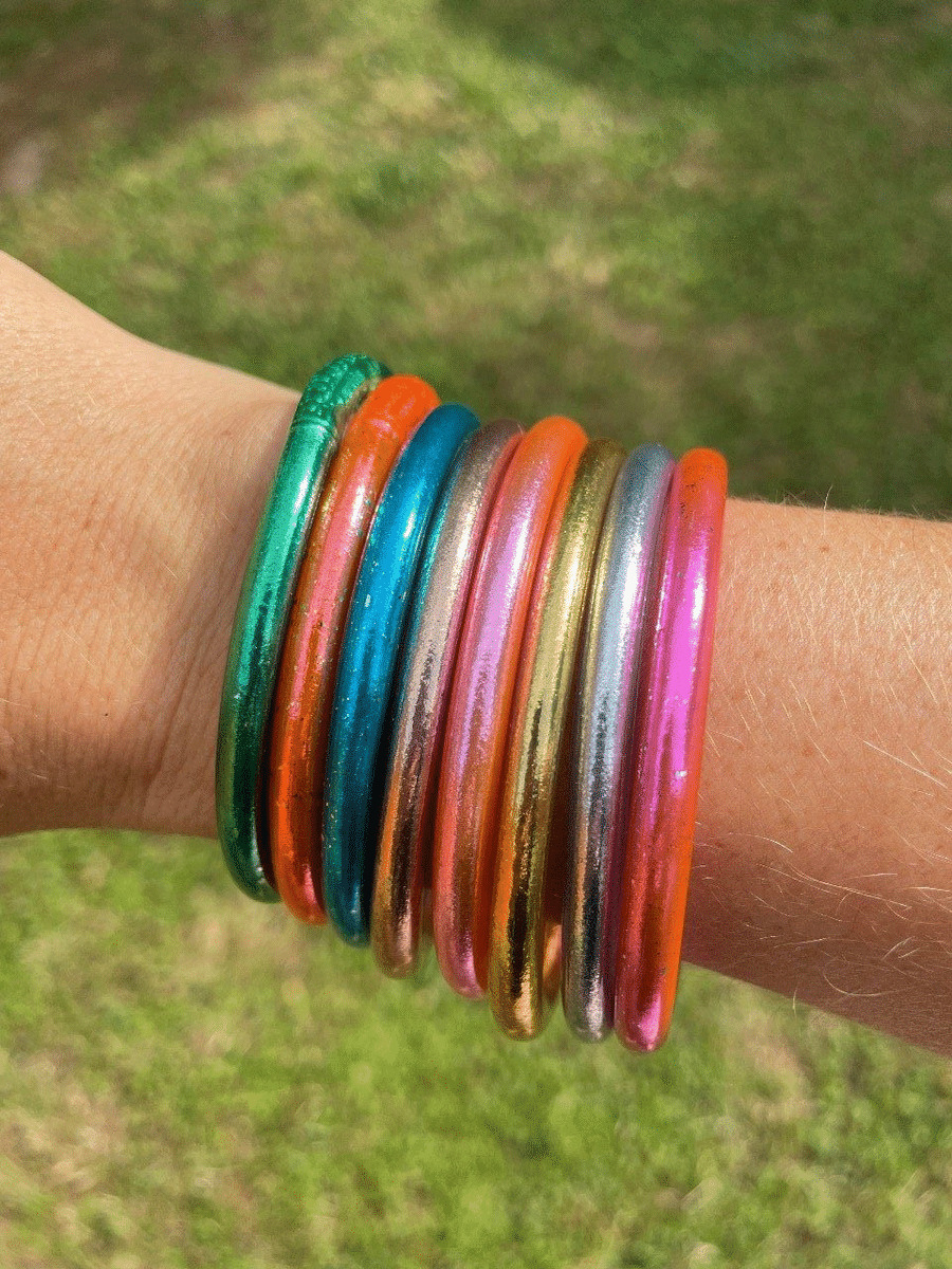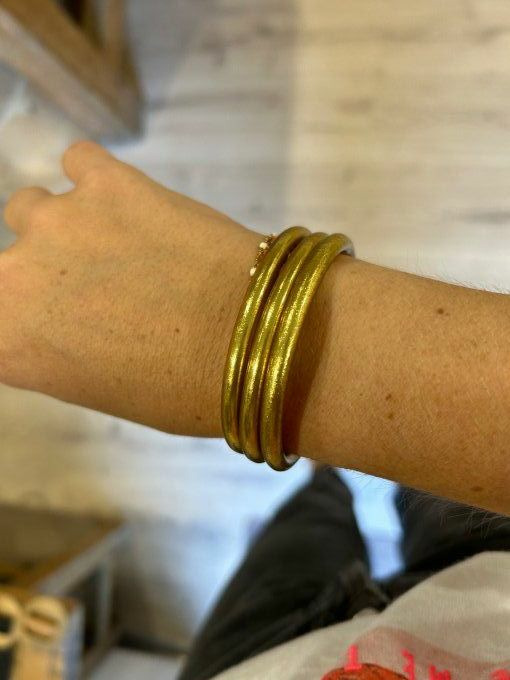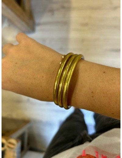 Jonc souple rempli de feuilles d’or, scellé avec un mantra gravé"Bonheur, Chance, Fortune et Amour" en thaïlandais