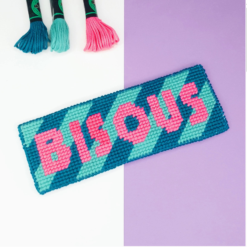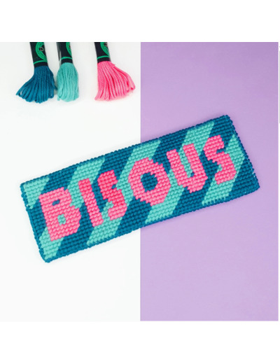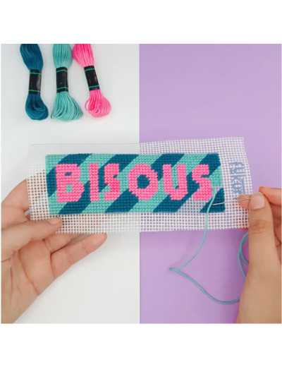 Voici un petit canevas ultra tendance pour glisser des BISOUS ! Avec son design rayé, moderne et épuré, c’est parfait pour initier au canevas ou offrir un cadeau sympa pour dire merci ! Pour débutants et enfants 10 ans+