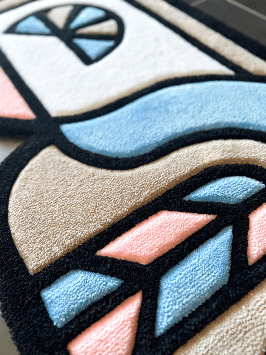 Tufting à la main dans notre atelier en Provence.